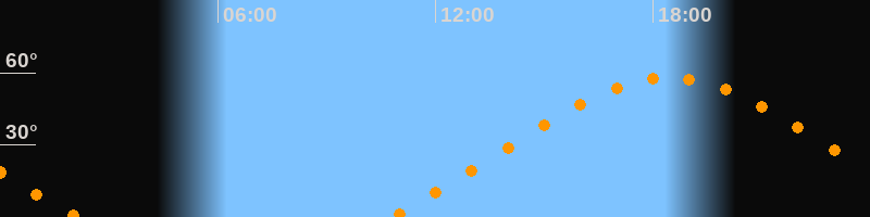 | Höchster Stand (Kulmination) | 18:26 Uhr (h = 57,9°) |