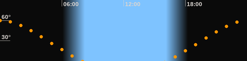Höchster Stand (Kulmination)00:03 Uhr (h = 59,9°)