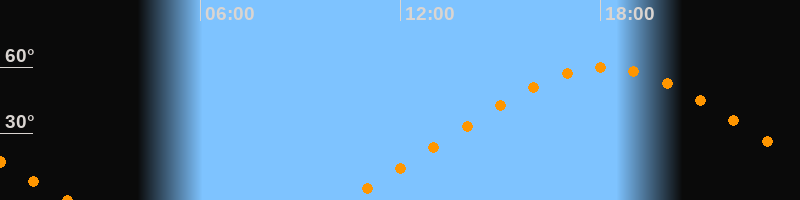 Höchster Stand (Kulmination)18:07 Uhr (h = 59,9°)