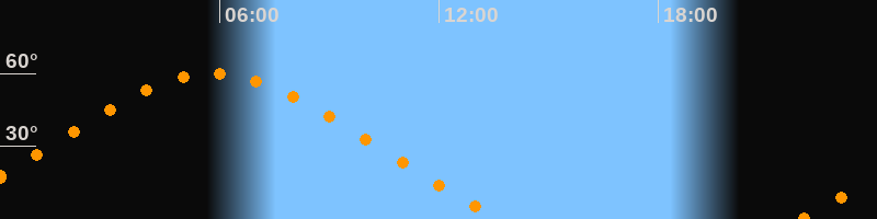 Höchster Stand (Kulmination)05:49 Uhr (h = 59,9°)
