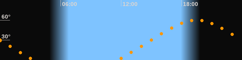Höchster Stand (Kulmination)19:27 Uhr (h = 59,9°)