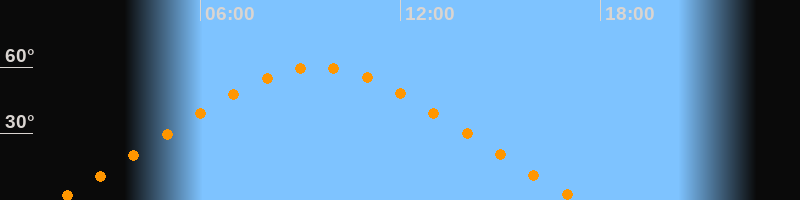 Höchster Stand (Kulmination)09:30 Uhr (h = 59,9°)