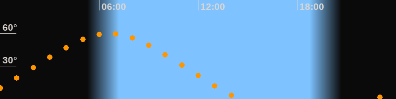 Höchster Stand (Kulmination)06:37 Uhr (h = 59,9°)