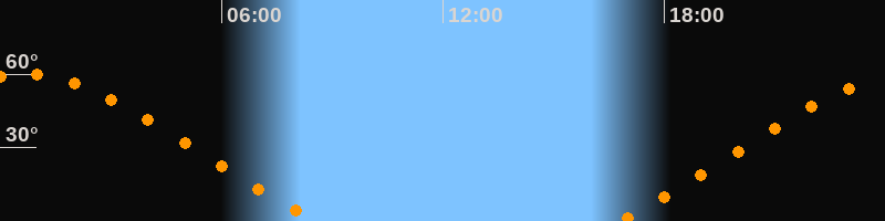 Höchster Stand (Kulmination)00:38 Uhr (h = 59,9°)