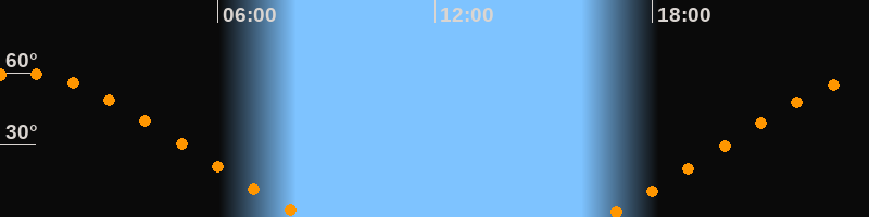 Höchster Stand (Kulmination)00:31 Uhr (h = 59,9°)