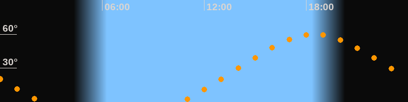 Höchster Stand (Kulmination)18:29 Uhr (h = 59,9°)