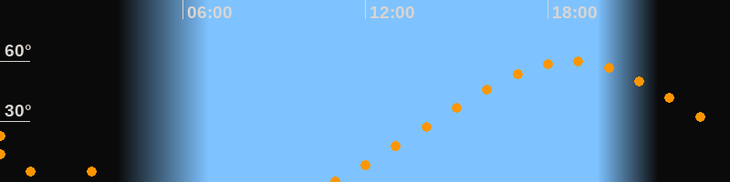 Höchster Stand (Kulmination)18:46 Uhr (h = 59,9°)