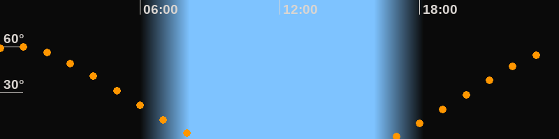 Höchster Stand (Kulmination)00:35 Uhr (h = 59,9°)
