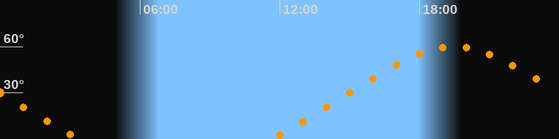 Höchster Stand (Kulmination)19:29 Uhr (h = 59,9°)