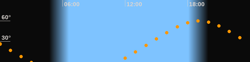 Höchster Stand (Kulmination)19:05 Uhr (h = 59,9°)