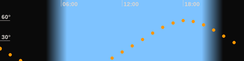 Höchster Stand (Kulmination)18:15 Uhr (h = 59,9°)