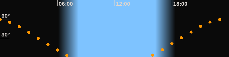 Höchster Stand (Kulmination)23:26 Uhr (h = 59,9°)