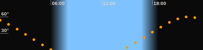 Höchster Stand (Kulmination)22:15 Uhr (h = 59,9°)