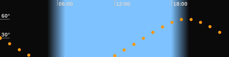 Höchster Stand (Kulmination)19:30 Uhr (h = 59,9°)