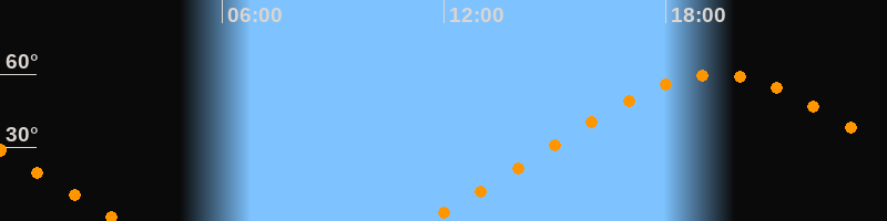Höchster Stand (Kulmination)19:22 Uhr (h = 59,9°)
