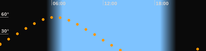 Höchster Stand (Kulmination)06:24 Uhr (h = 59,9°)