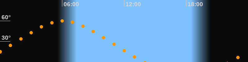 Höchster Stand (Kulmination)06:05 Uhr (h = 59,9°)