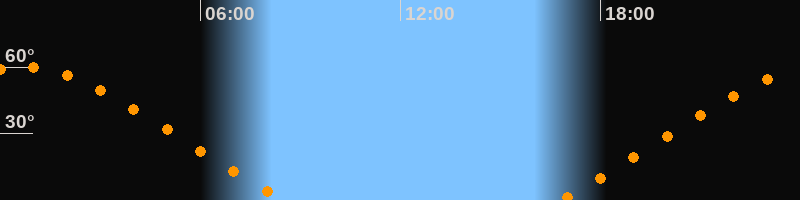 Höchster Stand (Kulmination)00:37 Uhr (h = 59,9°)