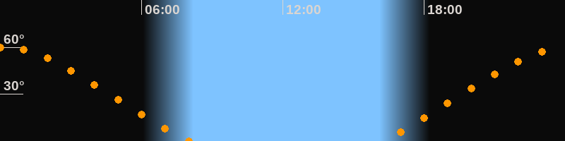 Höchster Stand (Kulmination)00:06 Uhr (h = 59,9°)