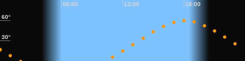 Höchster Stand (Kulmination)18:04 Uhr (h = 59,9°)