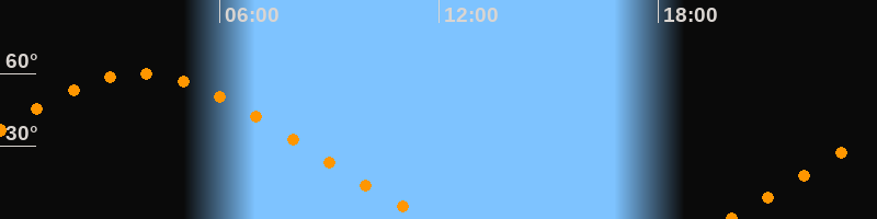 Höchster Stand (Kulmination)03:49 Uhr (h = 59,9°)