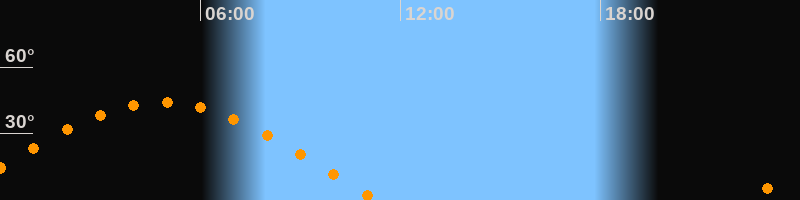 | Aufgang | 22:21 Uhr im Osten (αAz = 81,8°) |