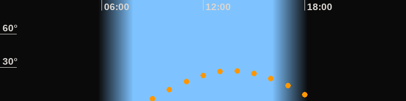 Höchster Stand (Kulmination)13:43 Uhr (h = 27,1°)