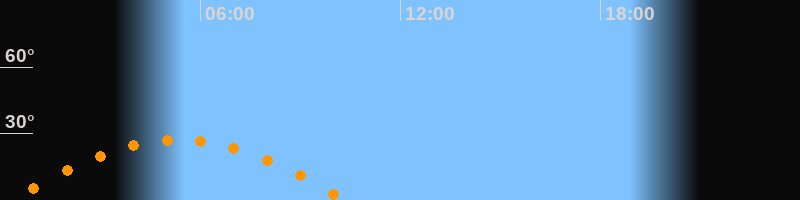 Höchster Stand (Kulmination)05:20 Uhr (h = 27,1°)