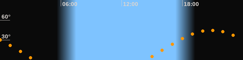 | Aufgang | 14:22 Uhr im Osten (αAz = 80,7°) |