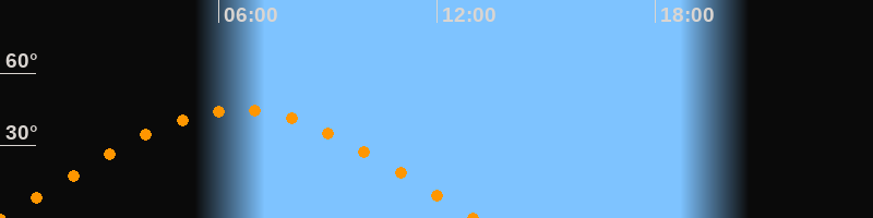 | Höchster Stand (Kulmination) | 06:33 Uhr (h = 44,7°) |