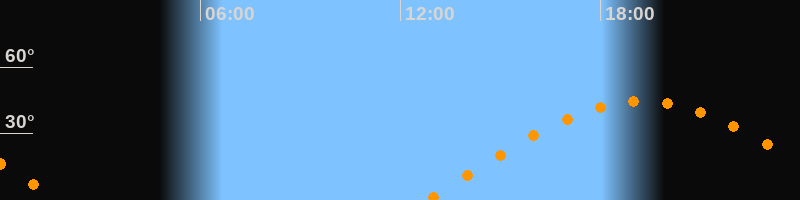 | Aufgang | 12:46 Uhr im Osten (αAz = 80,7°) |