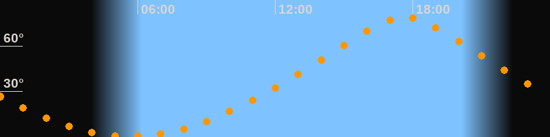 | Höchster Stand (Kulmination) | 17:38 Uhr (h = 79,1°) |