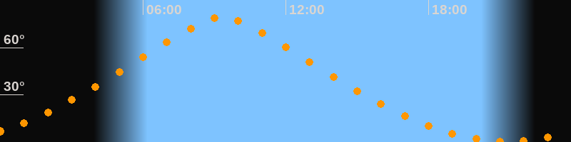 | Höchster Stand (Kulmination) | 09:20 Uhr (h = 79,1°) |