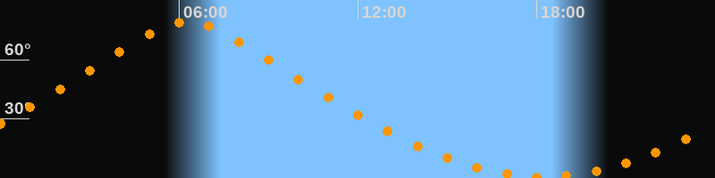 | Höchster Stand (Kulmination) | 06:16 Uhr (h = 79,1°) |