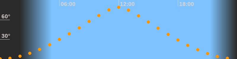 | Höchster Stand (Kulmination) | 11:57 Uhr (h = 79,1°) |