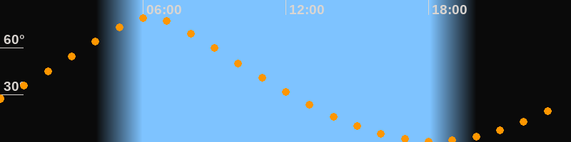 | Höchster Stand (Kulmination) | 06:16 Uhr (h = 79,1°) |