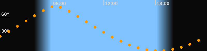| Höchster Stand (Kulmination) | 06:25 Uhr (h = 79,1°) |