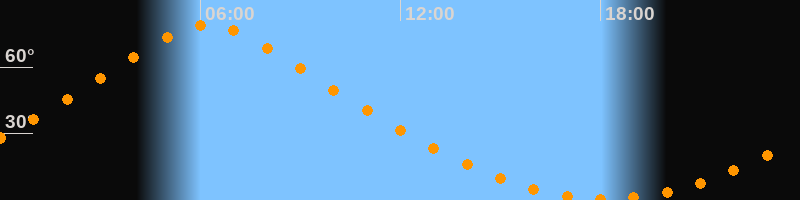 | Höchster Stand (Kulmination) | 06:13 Uhr (h = 79,1°) |