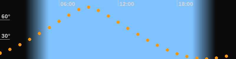 | Höchster Stand (Kulmination) | 08:55 Uhr (h = 79,1°) |