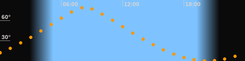 | Höchster Stand (Kulmination) | 08:20 Uhr (h = 79,1°) |