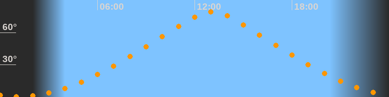 | Höchster Stand (Kulmination) | 13:04 Uhr (h = 79,1°) |