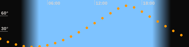 | Höchster Stand (Kulmination) | 16:10 Uhr (h = 79,1°) |