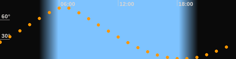 | Höchster Stand (Kulmination) | 06:28 Uhr (h = 79,1°) |