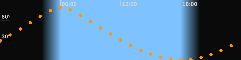 | Höchster Stand (Kulmination) | 06:04 Uhr (h = 79,1°) |