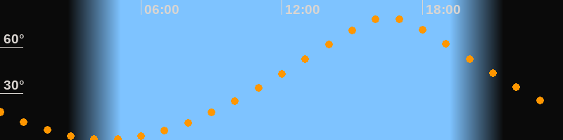 | Höchster Stand (Kulmination) | 16:30 Uhr (h = 79,1°) |