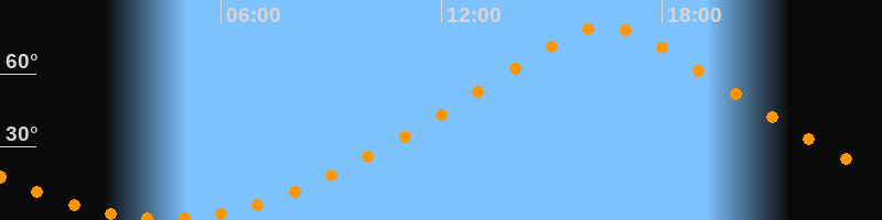| Höchster Stand (Kulmination) | 16:26 Uhr (h = 79,1°) |