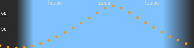 | Höchster Stand (Kulmination) | 14:01 Uhr (h = 79,1°) |