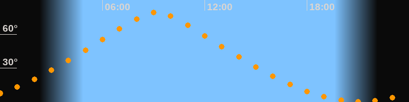| Höchster Stand (Kulmination) | 09:10 Uhr (h = 79,1°) |