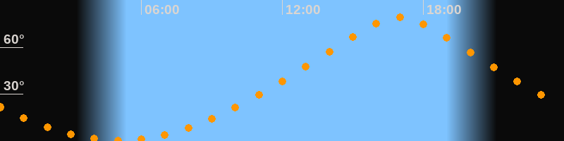 | Höchster Stand (Kulmination) | 16:59 Uhr (h = 79,1°) |