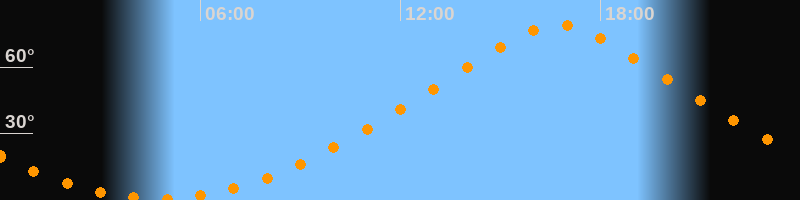 | Höchster Stand (Kulmination) | 16:43 Uhr (h = 79,1°) |